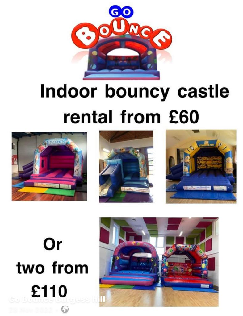 So to keep the costs down a little, we are running a promotion for indoor parties only. You can choose from any of our castles, large or small and rent it for 3 hours for only £60. Make your celebration 'go with a bounce' and save up to £20 on the cost of one of our castles at Go Bounce in Burgess Hill.